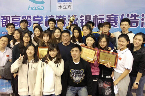 12月2日,2017年首都高校游泳锦标赛在首都经济贸易大学举行,我院的11名女生(郭思佳、张文卓、金美含、李佳欣、嵇欢、汪晨、闫雨鑫、史雨鑫、刘祺雯、关悦琦、李云妍)和9名男生(张宇驰、姜松、王毅德、陈少冰、张梦翰、李啸晨、胡树清、顾茄琦、宋凯)参加了游泳甲A组(高水平组)的比赛。