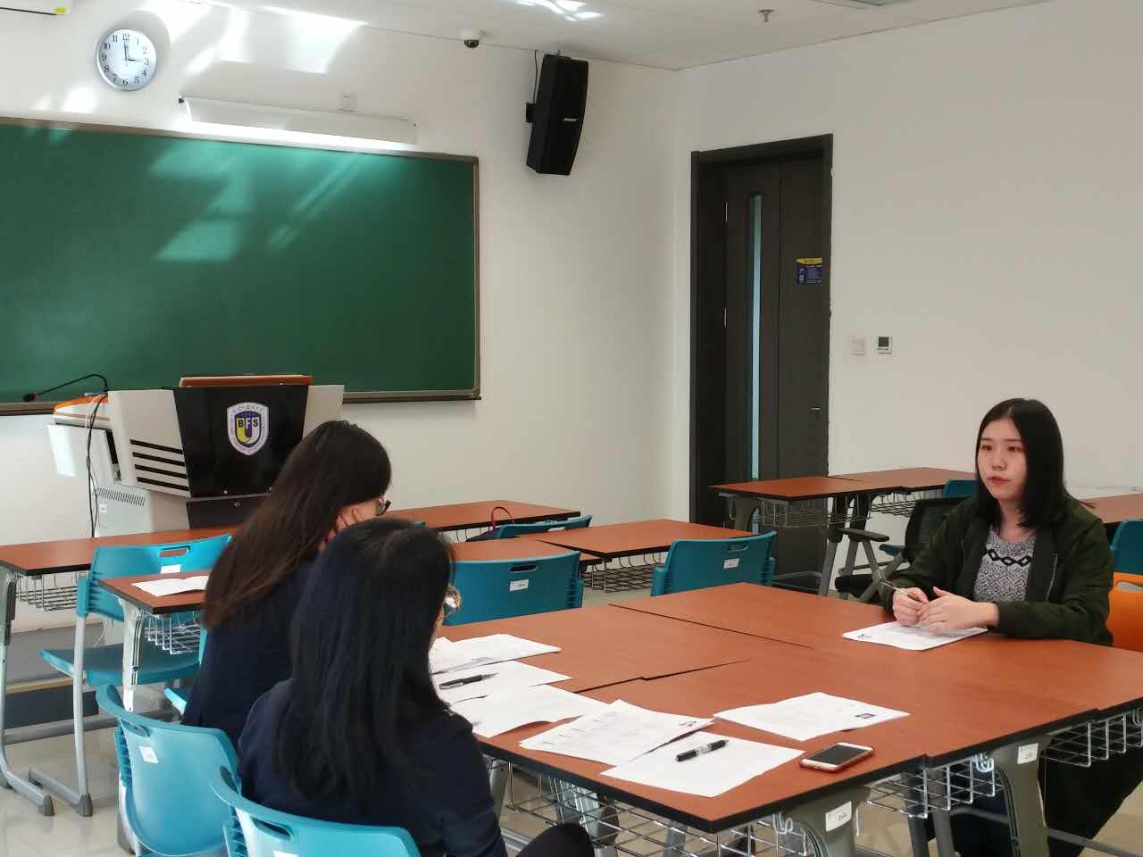 本次就业力大赛初赛统一采用单独面试的模式,由参赛者依次单独与两位老师模拟面试。本次初赛共分为参赛者自我介绍,老师提问和选手回答三个部分。面试过程中,选手们对自己的未来职业有明确的规划,思维敏捷,对老师的提问也对答如流,表现十分出色。
