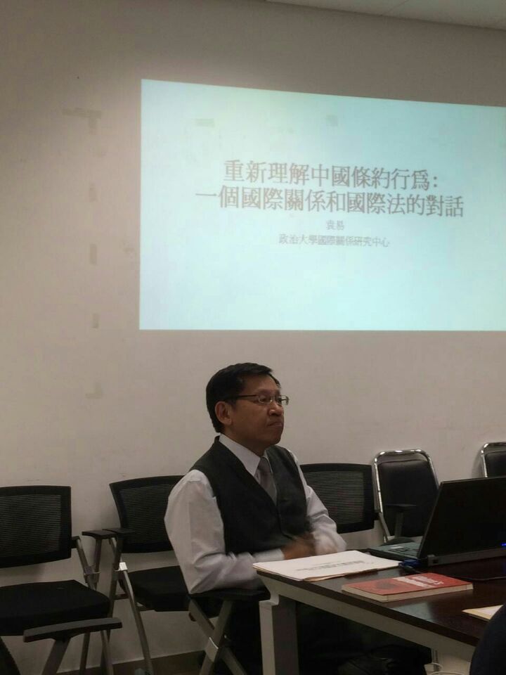 2015年11月18日(周三)15:30-17:30,北外国关前沿沙龙第二期活动在356体育在线官网西院综合楼举行。本次沙龙主题是“重新理解中国条约行为:一个国际关系与国际法的对话”。本次沙龙学术活动由袁易教授(台湾政治大学国际关系研究中心教授)主讲、尹继武老师(356体育在线官网副教授)主持,并邀请王明进(356体育在线官网教授、副院长)和张效民(356体育在线官网副教授)两位老师作为评议人。本次沙龙吸引了来自356体育在线官网和中国人民大学的近二十名师生前来参加。