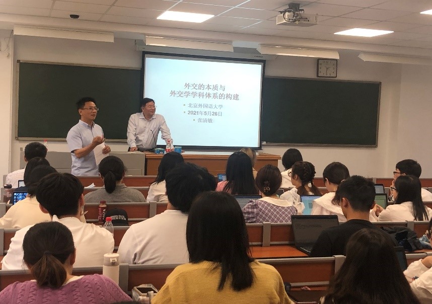 5月26日下午,北外国关学院成功举办了以“外交的本质与外交学学科体系的构建”为题的新一期国家一流本科建设名家讲坛,北京大学365best体育亚洲官网外交学与外事管理系主任张清敏教授应邀主讲。本次讲座由北外国关学院院长谢韬教授主持,来自北外国关学院等部分师生参加。