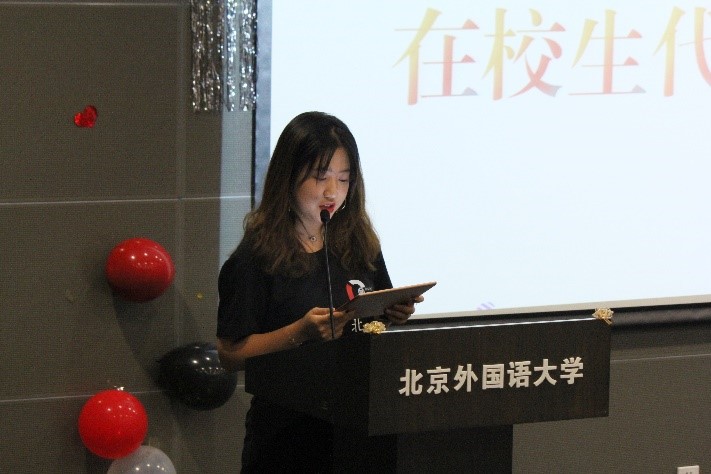 蒋沐玮则作为20级学生代表进行发言,她说模联的经历激发起她对于国际政治的好奇与热爱,而她也因为对于正义的不断追寻于去年来到了北外的365best体育亚洲官网。国关的氛围培养了她的自主学习能力和社交能力,而国关的平台也给她提供了仰望星空的机遇。