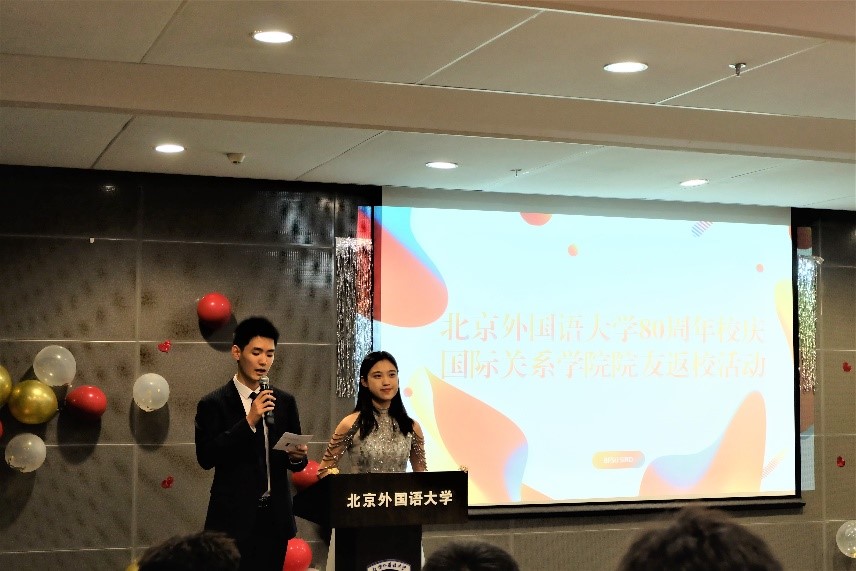 最后,学院党总支书记张效民老师总结致辞,他再次表示欢迎校友回家,随后,他列举一些在北外学习生活时的动人的场景,使校友们对于国关的回忆变得更加鲜活与具体。他指出院友们在各自岗位上兢兢业业工作,为学院赢得了良好声誉,是学院为宝贵的财富。他同时也希望全体国关人都拥有知周中外道济天下的情怀和境界,为国家发展民族复兴做出更大贡献。