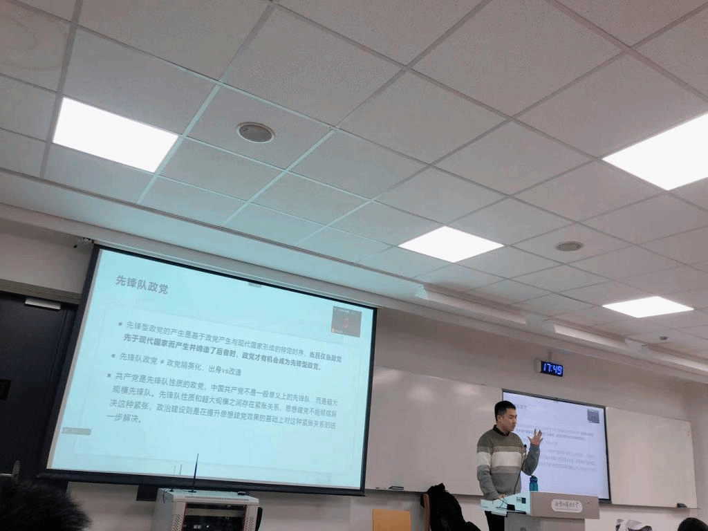 在《政治社会学》课程中,释启鹏老师结合“中国发展的世界意义”这一主题阐述了中国经验重塑政治学基本概念的重要意义,并从政党理论、国家理论、革命理论、政体理论四个角度详细阐述了中国共产党作为“先锋队政党”的理论创新,鼓励学生努力思索新时代中国政治学的基础理论与重大问题。