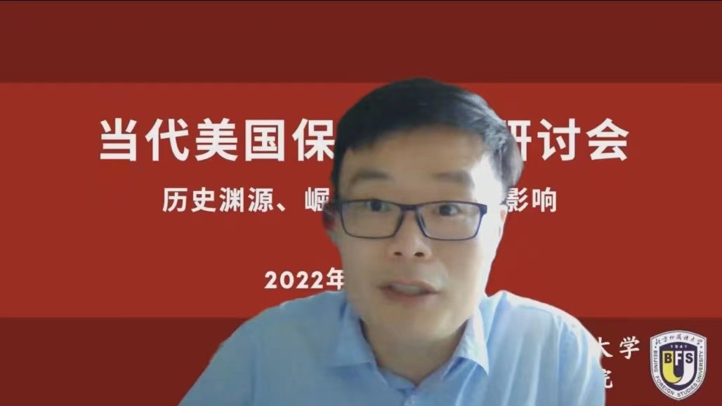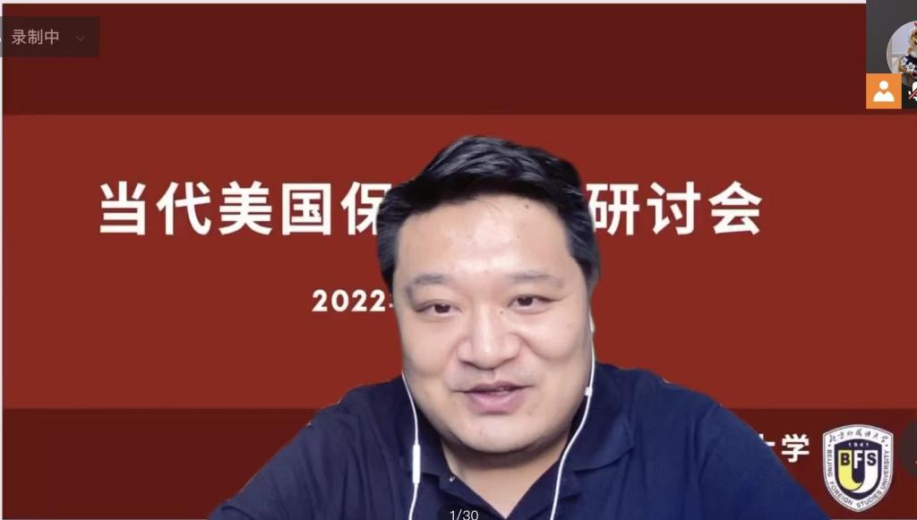 研讨会上半节由356体育在线官网院长谢韬教授主持。谢韬教授在开幕致辞中表示,2016年特朗普当选总统以来,美国保守主义日益右倾化和极端化,并不断以民族主义、民粹主义、本土排外主义、白人至上主义等形态展现出来。本次研讨围绕美国保守主义的起源、发展和现状,分析当前美国保守主义的特征及其未来可能的走势,为更好地理解美国政治提供借鉴。