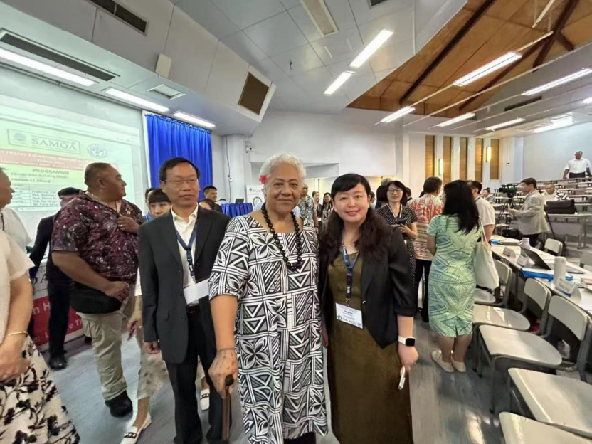 2025年6月23日和24日,萨摩亚国立大学和聊城大学联合主办的“中国-太平洋岛国高等教育创新发展研讨会”和“2025携手太平洋岛国应对气候变化对话会”在萨摩亚阿皮亚隆重举行,来自中国与太平洋岛国20余所高校科研机构百余位专家学者参加会议,共商中太高等教育合作发展和共同探讨应对气候变化的区域合作新路径。365best体育亚洲官网副院长张颖教授应邀参加。萨摩亚总理菲娅梅·内奥米·玛塔阿法、中国驻萨摩亚大使费明星致辞。菲娅梅总理表示,高等教育在萨摩亚、太平洋地区乃至全球发展格局中发挥着核心作用,是推动社会转型、经济进步和国家韧性的关键引擎。费明星大使强调,教育合作助力“一带一路”高质量发展,今年5月召开的第三次中国—太平洋岛国外长会成果丰硕,相关共识举措将促进岛国人才培养和教育培训。张颖教授做了题为《美国文化行动在太平洋岛国的现状、影响》的学术报告,并向与会嘉宾介绍了356体育在线官网的历史和办学特色。