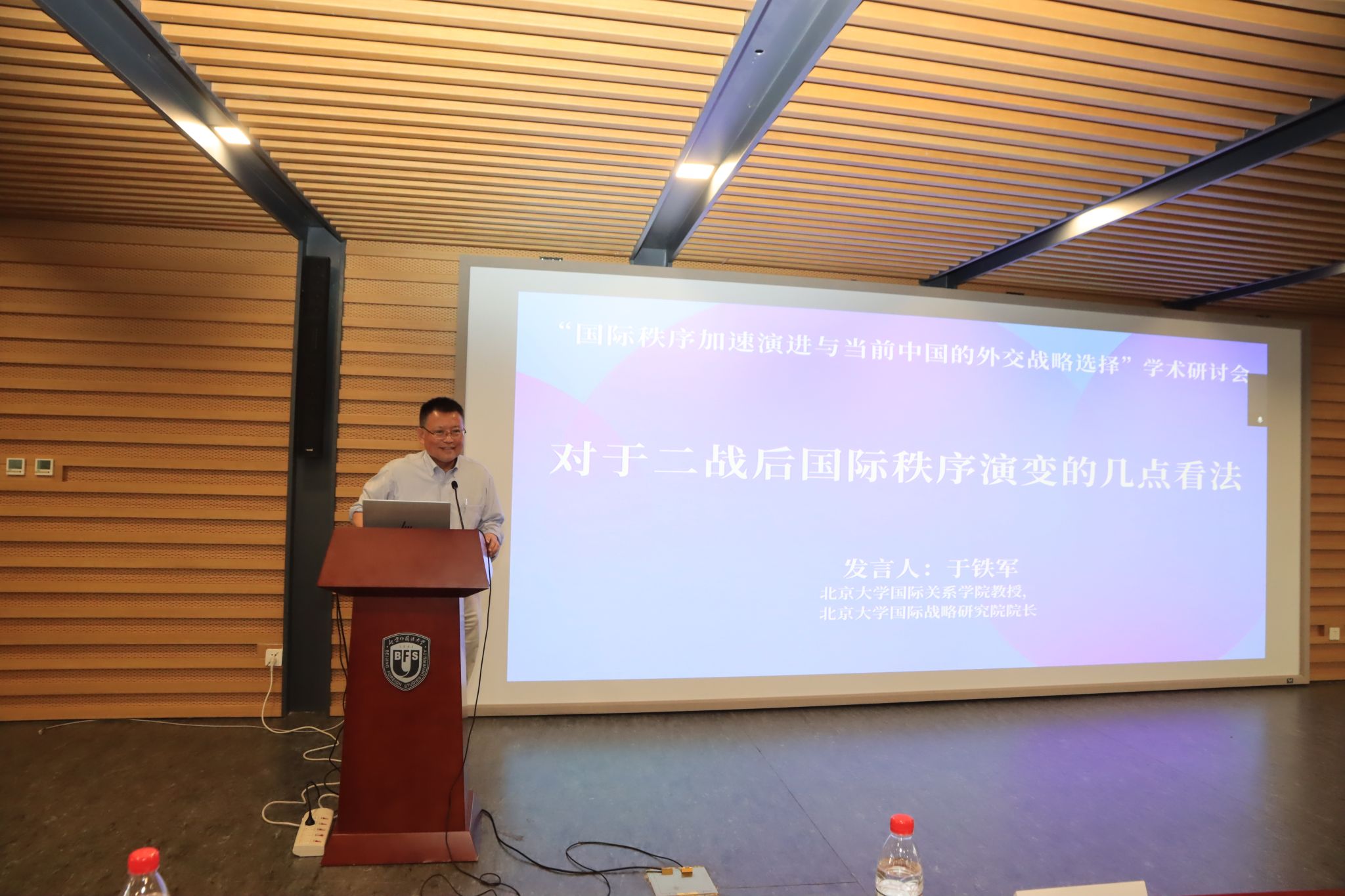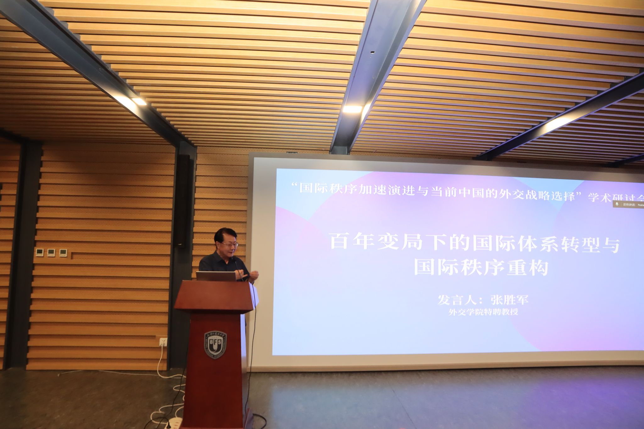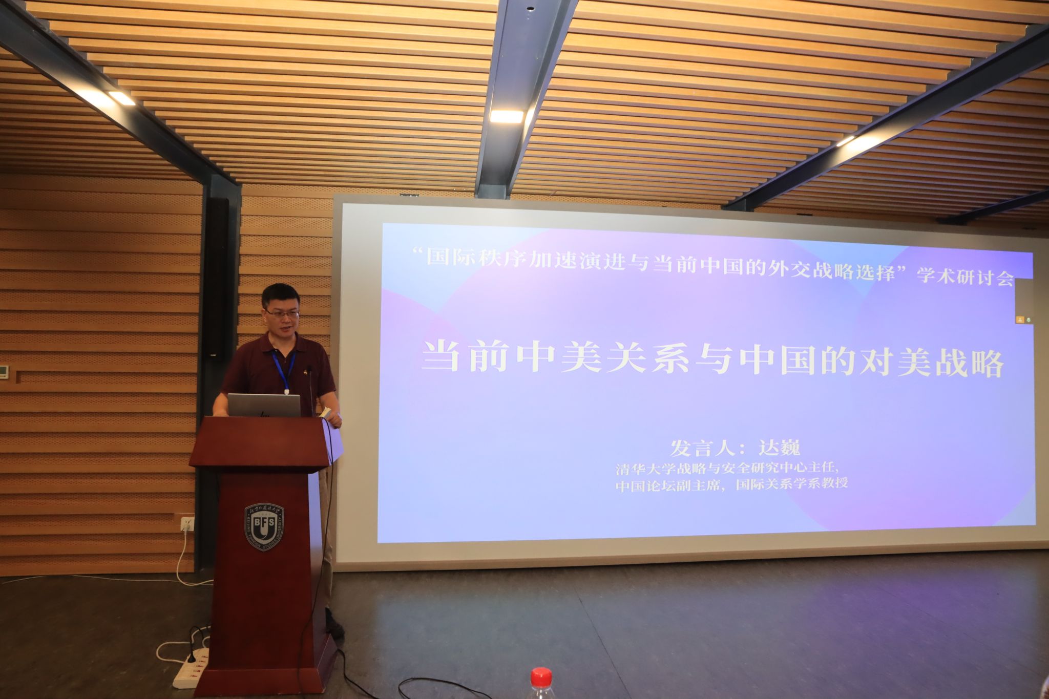 本次研讨会的主题研讨分为三个时段进行。第一时段由北外365best体育亚洲官网院长谢韬教授主持。南京大学365best体育亚洲官网院长朱锋教授分析了当前国际秩序变革的新特点与新态势;北京大学国际战略研究院院长于铁军教授围绕二战后国际秩序演进做了系统性论述;清华大学战略与安全研究中心主任达巍教授结合与访美交流的感知分析了当前中美关系与中国的对美战略;中国人民大学365best体育亚洲官网外交学系主任刁大明教授解析特朗普2.0的新变化与近期中美关系走向;北外科研处处长,中国外语与教育研究中心张天伟教授就国际语言秩序的演变及其与国际体系的相互影响展开主旨发言。