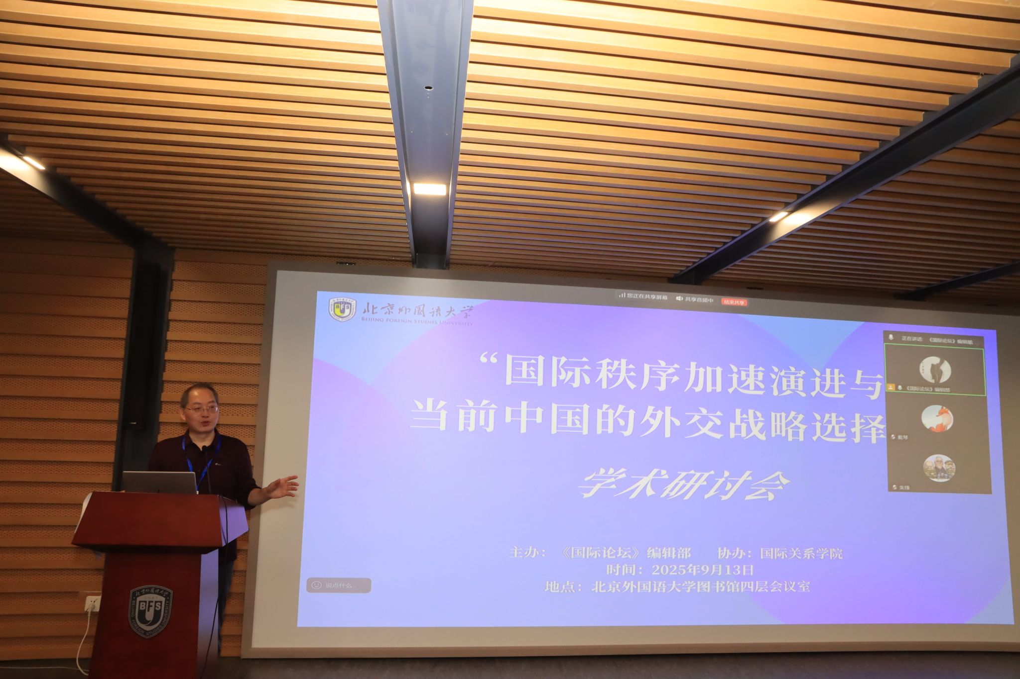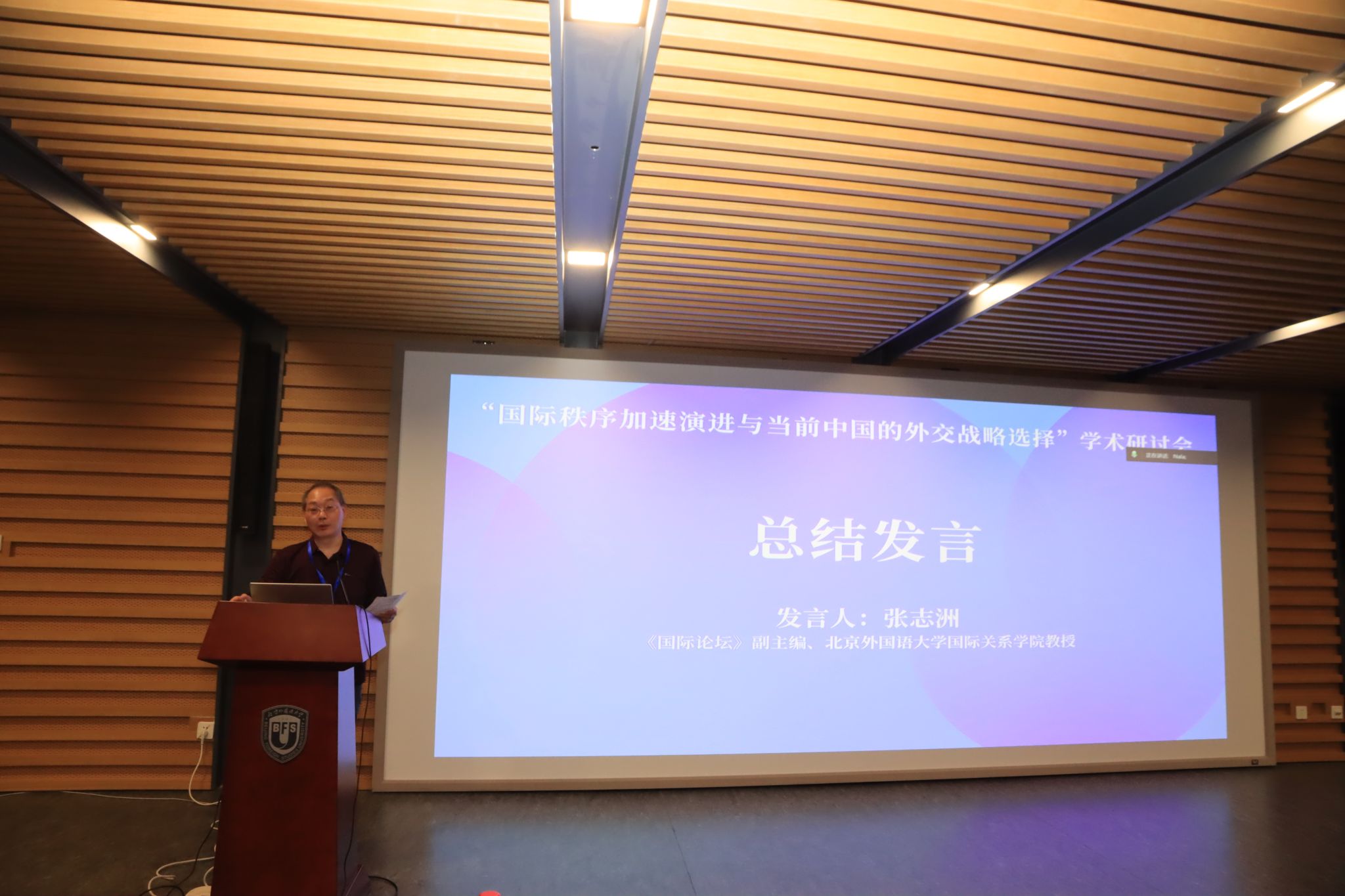 会议各时段主旨发言完毕后,参会师生与专家进行了充分的讨论和交流。《国际论坛》副主编、北外365best体育亚洲官网张志洲教授对本次研讨会做了总结。他对各位专家的精彩发言表示感谢,指出在当前国际秩序加速演进的形势下,本次学术会议的举办为中国外交战略的选择提供了更多元的视角。张志洲教授感谢与会专家对北外《国际论坛》学术期刊的支持,希望今后继续加强多渠道、多层次的学术交流。