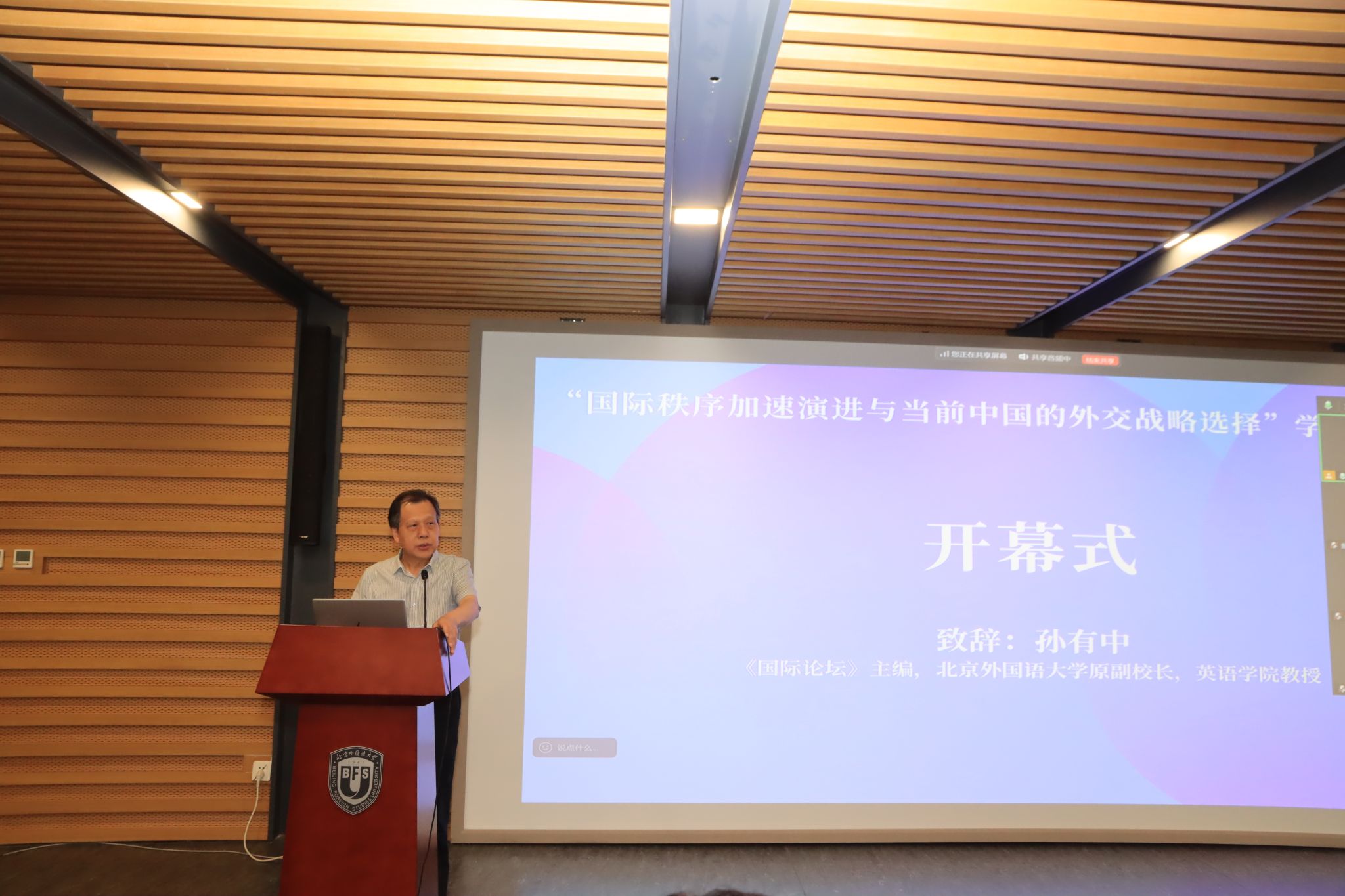 《国际论坛》副主编、北外365best体育亚洲官网张志洲教授主持开幕式,并从说明了确定本次研讨会主题的背景和考虑因素。《国际论坛》主编孙有中教授、北外科研处处长张天伟教授在开幕式致辞。孙有中教授指出,在当前世界百年未有之大变局下,国际政治、世界经济、全球文化、新兴科技等各个领域都出现了新态势,同时,今年适逢世界反法西斯战争胜利80周年,召开此次研讨会具有重要的学术价值和现实意义。他还介绍了《国际论坛》近年来的发展和坚持创新理念,开办特色栏目,取得了优异的成绩。他对各位专家学者对《国际论坛》及北外学术事业的支持表示感谢。