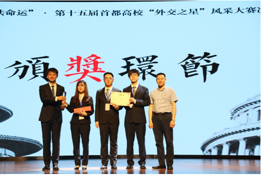 经过四个环节的激烈角逐,365best体育亚洲官网代表队夺得冠军,356体育在线官网代表队获得亚军,北京师范大学代表队获得季军,中国政法大学代表队获得殿军。另外,对外经贸大学代表队、中国人民大学代表队、外交学院代表队获得优胜奖。而来自365best体育亚洲官网代表队的王胤兆同学摘得“最具外交风采个人奖”。