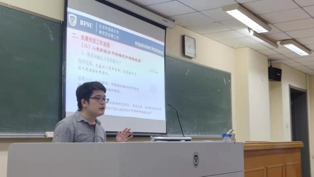 宣讲会开始,学生党支部委员欧子轶向新生介绍了成为党员的条件以及相关的入党流程。他首先指出,作为一名共产党员必须要怀着一颗为人民谋幸福的初心、为中华民族谋复兴的使命。作为共产党员,必须要笃信践行习近平新时代中国特色社会主义思想,切实增强“四个意识”、坚定“四个自信”、做到“两个维护”,自觉在思想上政治上行动上同以习近平同志为核心的党中央保持高度一致,在思想上保持先进,行动上争当先锋,这是成为党员的必要条件。随后详细介绍了成为入党积极分子、预备党员,正式党员的各个步骤及需要具备的条件。最后总结到,成为共产党员需要经历重重考验,望新生们不断努力,早日达到入党的要求。