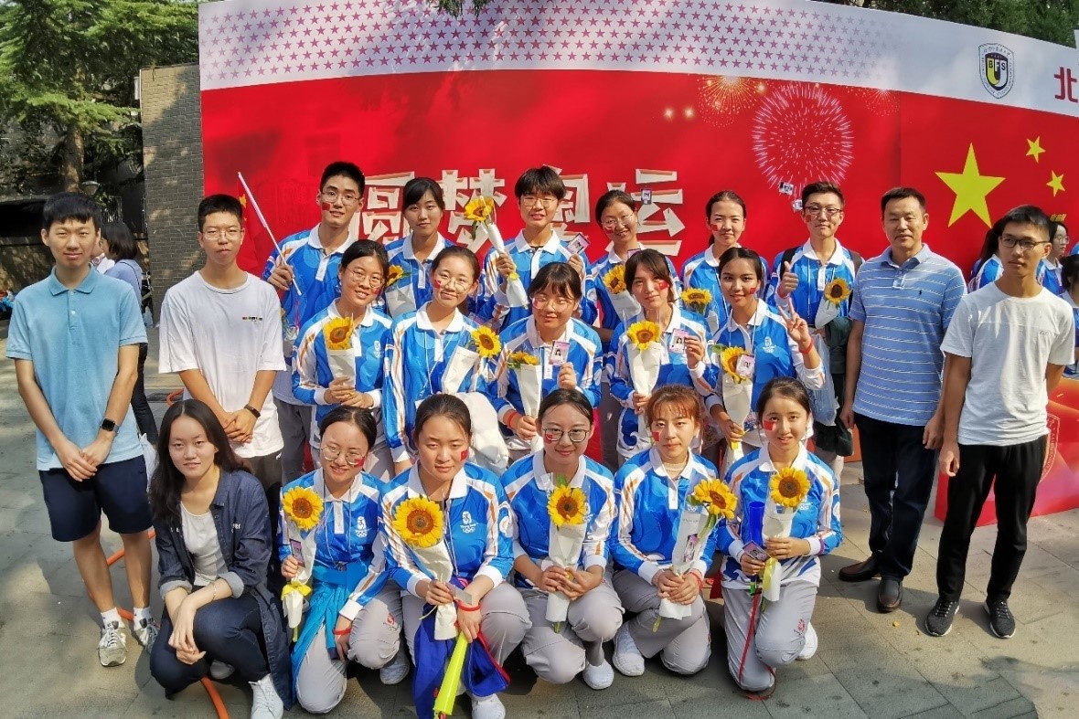 10月1日下午2时,参加国庆庆祝活动的学生返回学校,365best体育亚洲官网党总支书记张效民及学生代表到文化广场迎接,祝贺他们圆满完成任务并表示慰问。