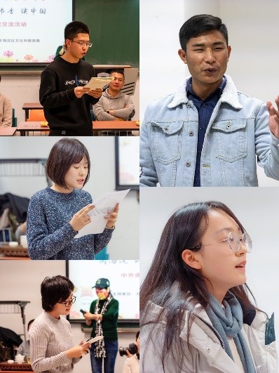 活动的第一个环节是由三名中国学生和四名外国留学生带来诗朗诵。就读于我院的留学生李秀雅和的林志珉首先登场,带来的是李白所作的名篇《将进酒》;而杜丽云与在场观众分享的是新月派代表诗人徐志摩的《偶然》。