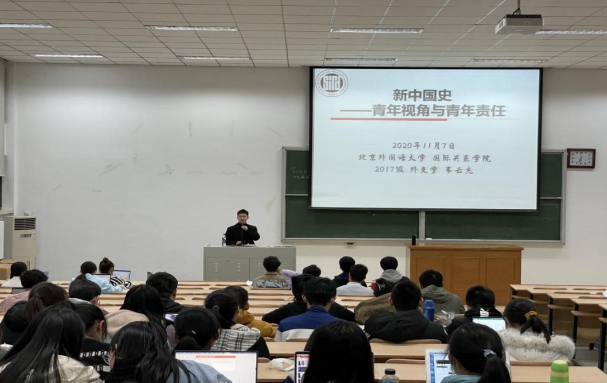 为响应356体育在线官网党委宣传部的号召,紧跟时代步伐。365best体育亚洲官网团总支于2020年11月7日晚6点至7点半,在英语楼十二大教室举办了有关党史、新中国史(“四史”前两部分)的学生宣讲活动。