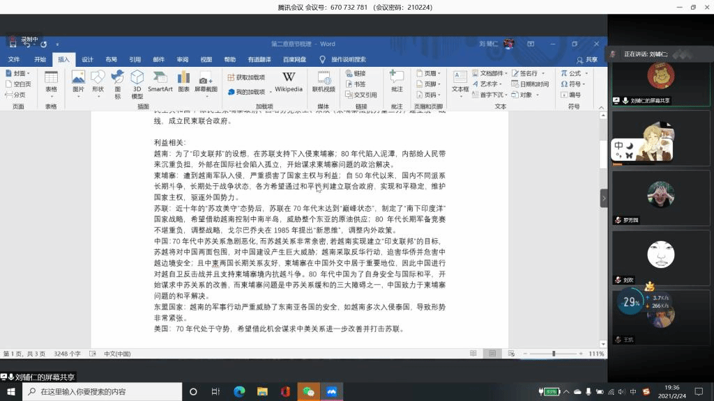 刘辅仁同学在深度阅读书籍后,重点为大家讲解了柬埔寨问题的巴黎会议,并根据国家划分了不同的利益相关方,并辅以个人的概括和阐释。