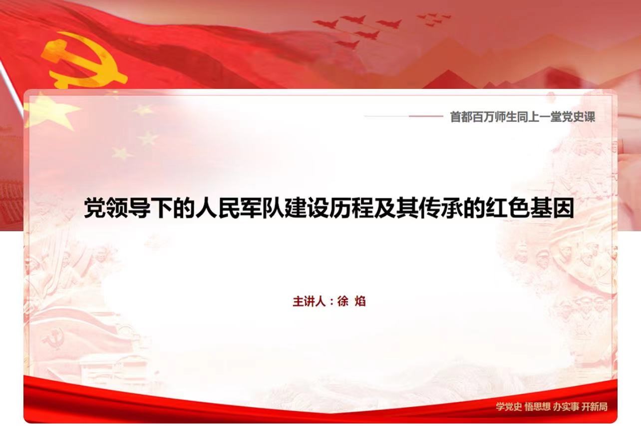 2021年4月14日下午,365best体育亚洲官网学生党支部党员共同观看“首都百万师生同上一堂党史课” 网络公开课第三讲,学习“党领导下的人民军队建设历程及其传承的红色基因”。徐焰教授讲授了我们党领导人民军队在内忧外患中诞生、在磨难挫折中成长、在攻坚克难中壮大的艰辛历程,描绘了一幅我们的革命武装从星星之火发展成燎原之势的波澜壮阔的历史画卷,准确凝练并系统总结了人民军队所传承的红色基因,深刻揭示了人民军队从胜利走向新的胜利与党的正确领导密不可分,与这份红色基因的代代相传紧密相连。