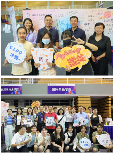 我校党委书记王定华,党委副书记、校长杨丹,党委常委、副校长贾德忠、丁浩一行于27日上午来我院迎新点视察迎新工作情况。学院领导汇报了我院的迎新进展,师生共邀王定华书记和杨丹校长在国关新生签名板上签字留念。学校、学院领导高度重视迎新工作,对学院迎新工作予以肯定。最后,校领导与国关师生一起合影留念。
