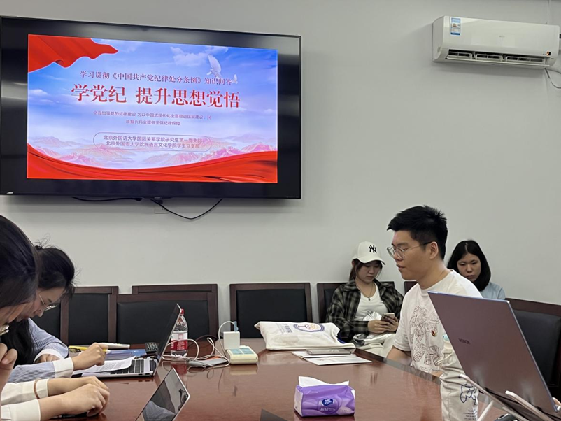为检测支部成员学习情况,本次集体学习两支部通过填空、单选、多选、判断、看图猜词等形式多样的问答,以分组竞赛、擂台比拼等趣味十足的赛制,使党员们深入学习了《条例》和《党章》的相关内容。365best体育亚洲官网研究生第一党支部书记杨孟昊指出,各位党员和积极分子要始终加强政治学习,坚守纪律规矩,希望各位同志把党纪学习内化于心、外化于行,时刻保持高度警醒。欧洲语言文化学院本科生党支部副书记李海月认为,作为新时代的青年党员,一定要带头学习党纪,弄清楚自己该做什么、不该做什么,能做什么、不能做什么。