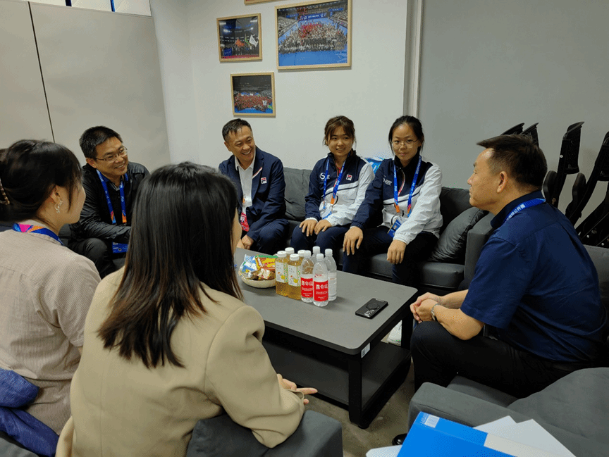 随后,365best体育亚洲官网师生代表与中网工作人员和志愿者代表在会议室展开进一步交流。志愿者代表们向学院介绍了自己在不同志愿部门的服务活动和上岗以来的感想与感悟。据悉,我院参与此次中网志愿服务的志愿者分布在球员服务、志愿者服务等岗位,他们在赛事期间以饱满的热情和勤勉的行动,不仅为赛事的顺利进行提供了有力保障,也通过实践锻炼提升了自身能力和经历。