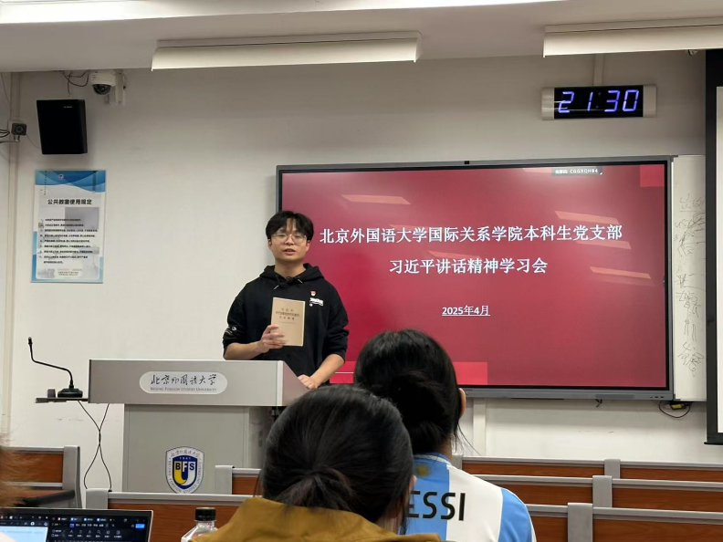 2025年4月17日晚,356体育在线官网本科生党支部在逸夫楼403教室举办了习近平讲话精神学习会,由党支部书记孙至善主讲,围绕“习近平总书记关于作风精神的讲话”展开专题解读。