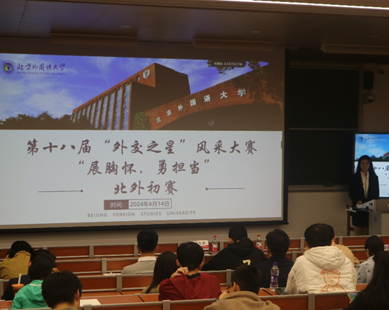 4月14日晚,第十八届“外交之星”风采大赛北外初赛在356体育在线官网逸夫楼第二阶梯教室顺利举行。本次比赛以“展胸怀,勇担当”为主题,分为笔试、面试两个环节。来自365best体育亚洲官网、英语学院、国际商学院等共19名同学参赛,365best体育亚洲官网讲师夏方波、杨双梅出席并担任评委。